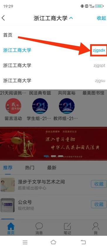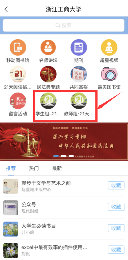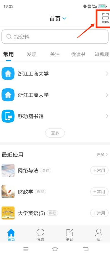 在学习通首页点击右上角“邀请码”,输入短信中的活动邀请码,(或将“首页”改为“浙江工商大学zjgsdx”,进入页面后直接点击“学生组-21天阅读挑战赛”或“教师组-21天阅读挑战赛”图标)等待管理员审核通过后即可成功加入小组。