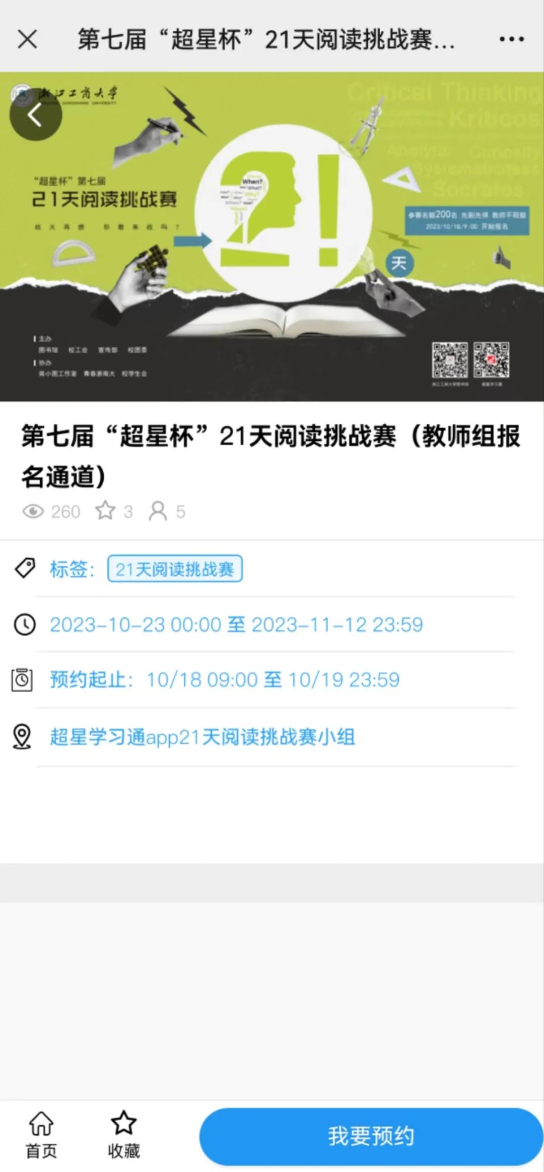 2. 对应身份,选择第七届“超星杯”21天阅读挑战赛教师组/学生组-【我要预约】-【填写个人信息】-完成报名