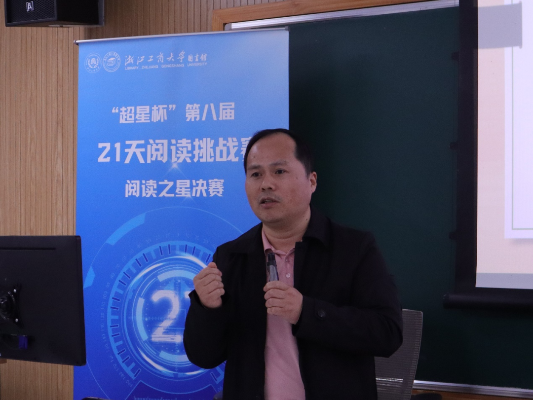 为深入贯彻党的二十大关于深化全民阅读、建设书香社会的会议精神,全面提升师生数字素养,助推“人工智能+”教育专项行动实施,图书馆携手宣传部、校工会、校团委联合推出了第八届21天阅读挑战赛。本届比赛以“人工智能”为主题,于2024年11月27日举行决赛。浙江工商大学纪委书记胡金生、宣传部副部长林晓莹以及马克思主义学院教授、“儒学茶座”读书协会负责人王绪琴出席活动并担任评委。共有42名教职工和200名在校生参与了比赛,最终评选出11名教职工“阅读之星”和10名学生组“阅读之星”。