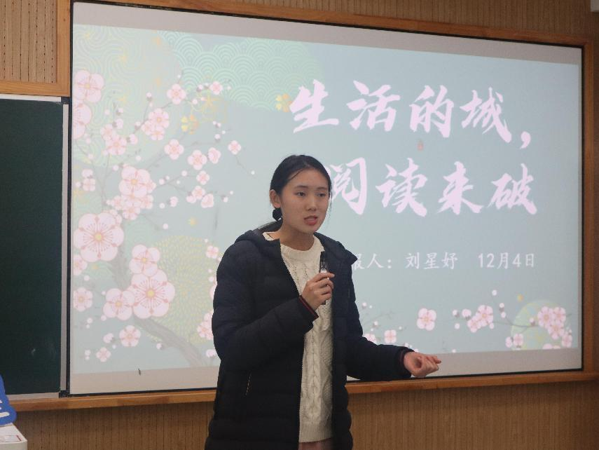 来自人文与传播学院的刘星妤同学,以“生活的城,阅读来破”为主题,为大家讲述了自己对阅读的思考和感悟。她将我们的生活看作是一座座围城,这些围城在保护我们的同时,也限制了我们的思维和视野,而阅读则是能打破这一堵堵围城的钥匙。